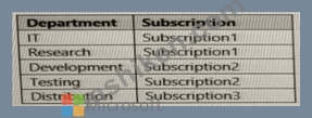 次の表に示すように、会社の部門はAzureサブスクリプションを使用しています。