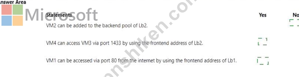 質問88 VM1 という名前の Azure 仮想マシンがあります。 Azure Network ...