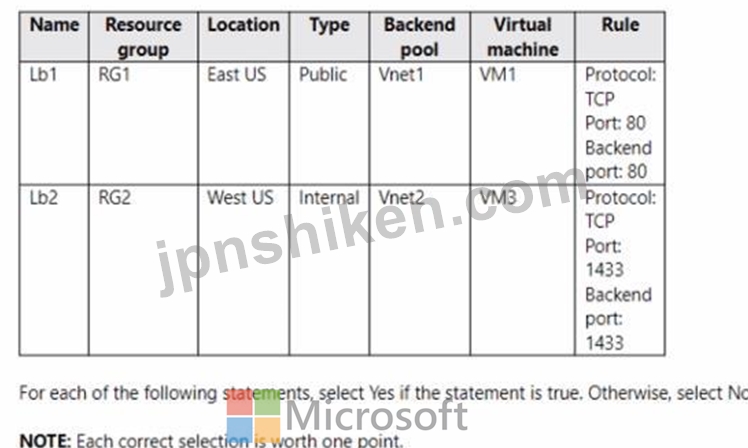質問89 LB1 という名前の内部基本 Azure ロード バランサーがあり、2 つ...