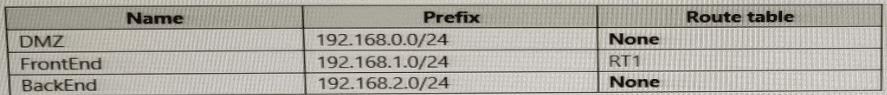 次の表に示すサブネットを持つ Vnet1 という名前の Azure 仮想ネットワークがあります。