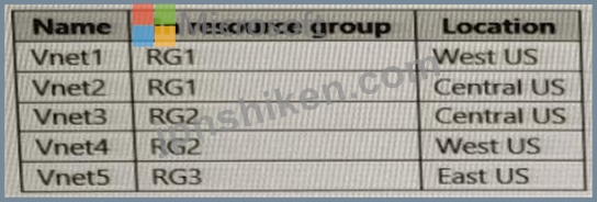 次の表に示す仮想ネットワークを含むAzureサブスクリプションがあります。