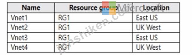 質問4 次の表に示す Azure 仮想ネットワークがあります。 (Exhibit) Az...