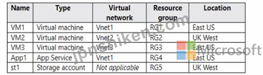 質問57 次の表に示すリソースを含む Azure サブスクリプションがありま...
