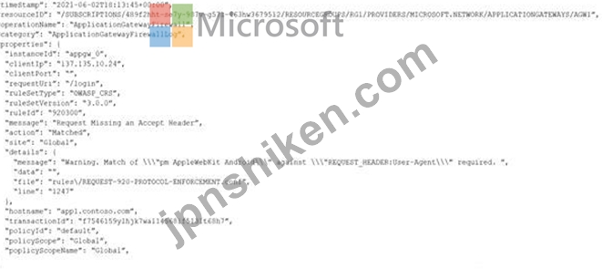 Azure Web Application Firewall(WAF)が有効になっているAzureアプリケーションゲートウェイがあります。