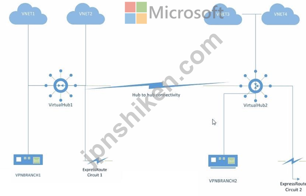 質問142 Hub1 という名前のハブを含む、VWAN1 という名前の Azure Virtua...