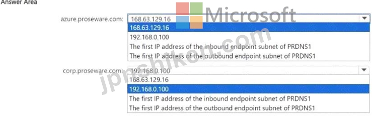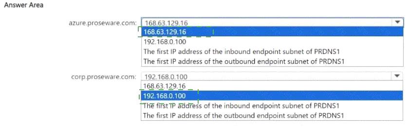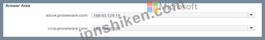 azure.proseware.com と corp.proseware.com の宛先 IP アドレスを設定する必要があります。ソリューションは一般的な要件を満たしている必要があります。