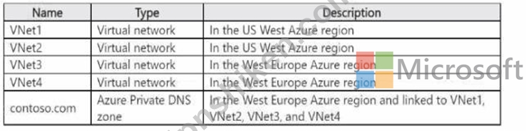質問121 次の表に示す仮想ネットワークにリンクされた contoso.com とい...