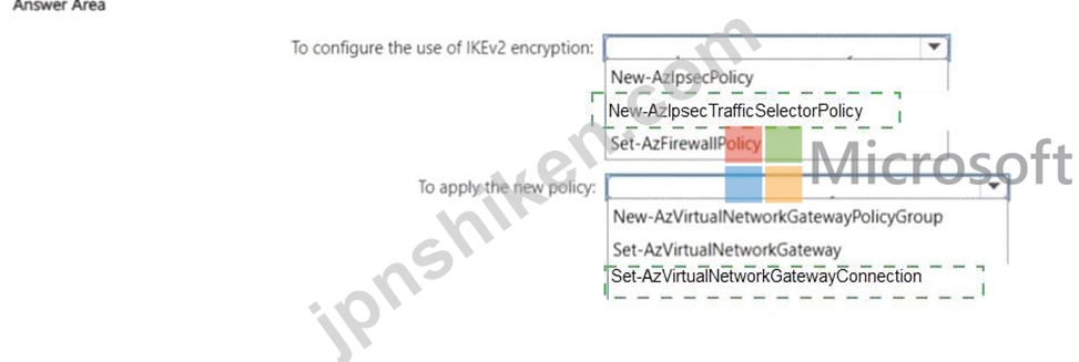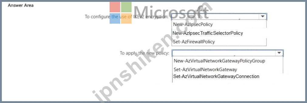 どの PowerShell コマンドレットを実行する必要がありますか? 回答するには、回答領域で適切なオプションを選択してください。