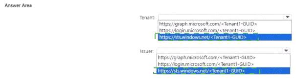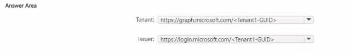 VNetGW1 のポイント対サイト構成設定で、テナントと発行者をどのように設定すればよいですか?