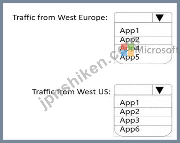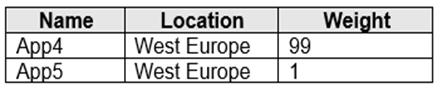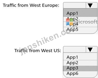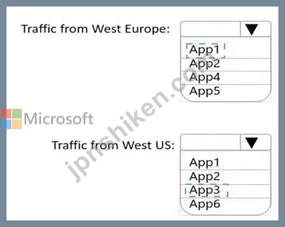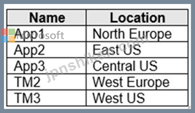 Based on TM1 table, West US will trigger TM3. However, both App2 and App6 were degraded (down), so none of them can be considered.