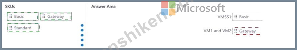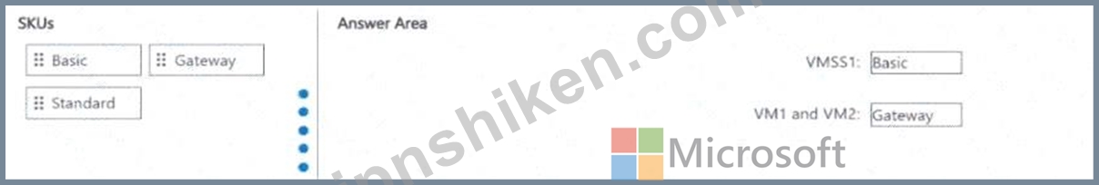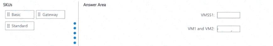 VMSS1、VM1、VM2のトラフィックを管理するには、2つのロードバランサーを導入する必要があります。ソリューションは以下の要件を満たす必要があります。