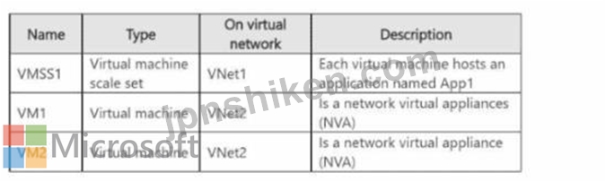 VNet1 と VNet2 という名前の 2 つの仮想ネットワークを含む Azure サブスクリプションがあります。