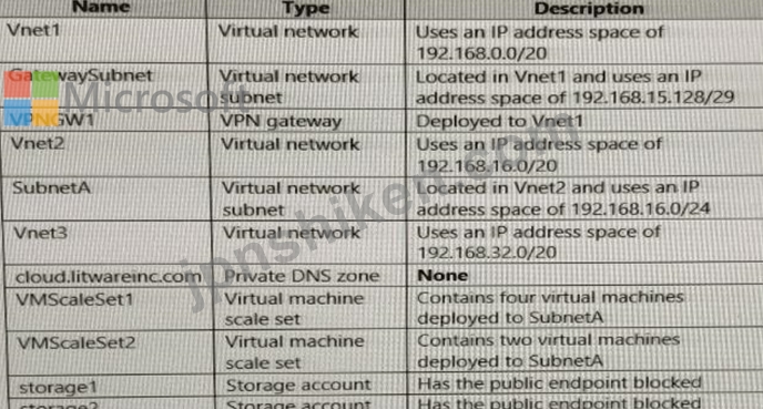 * Users must be able to connect to Vnet1 by using a Point-to-Site (P2S) VPN when working remotely.