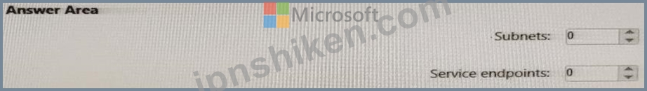 作成する必要があるサブネットとサービス エンドポイントの最小数はいくつですか? 回答するには、回答領域で適切なオプションを選択してください。