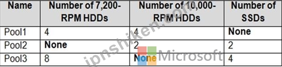 Windows Server を実行する Server1 というサーバーがあります。Server1 には、次の表に示す記憶域プールがあります。
