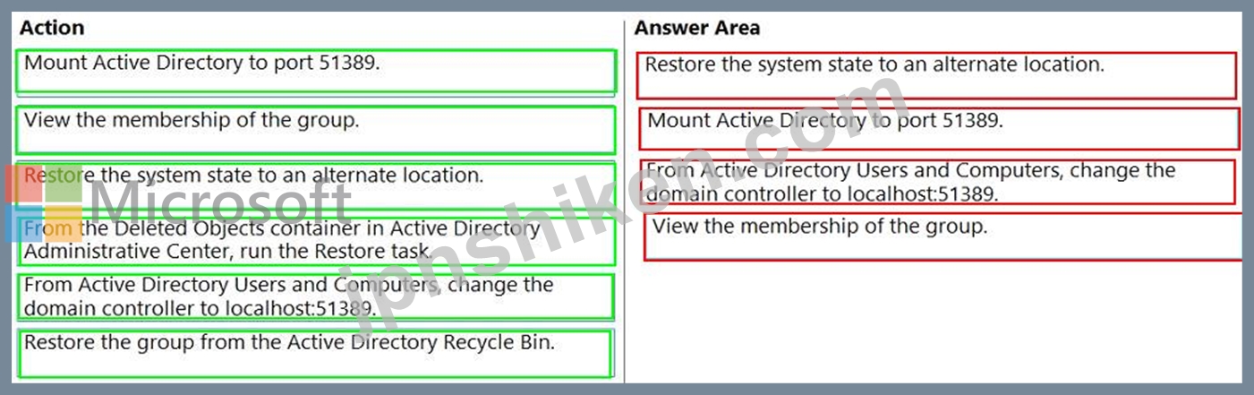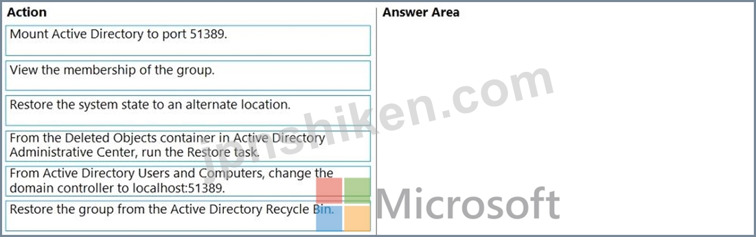ドメイン コントローラーから順番に実行する必要がある 4 つのアクションはどれですか? 答えるには、アクションのリストから適切なアクションを回答領域に移動し、正しい順序で並べます。