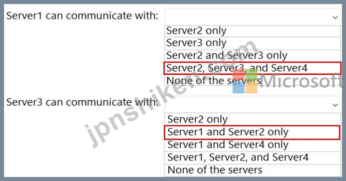 Server1 と Server3 はどのサーバーと通信できますか? 回答するには、回答エリアで適切なオプションを選択します。