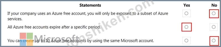 以下の各ステートメントについて、そのステートメントが正しい場合は「はい」を選択してください。そうでなければ、いいえを選択します。