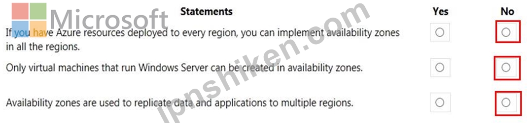 質問37 Azure可用性ゾーンを使用してAzureサービスへのアクセスを保護で...