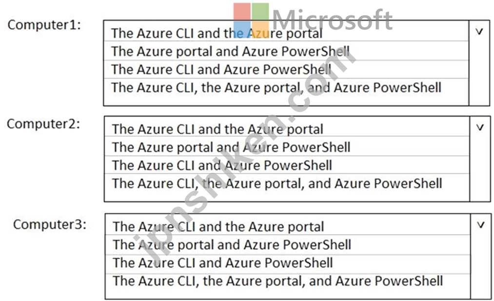 各コンピューターからどのAzure管理ツールを使用できるかを識別する必要があります。