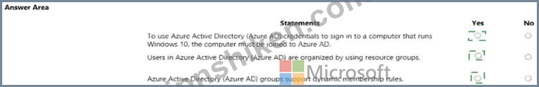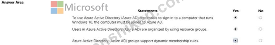 次の各ステートメントについて、ステートメントがtrueの場合は、[はい]を選択します。それ以外の場合は、[いいえ]を選択します。