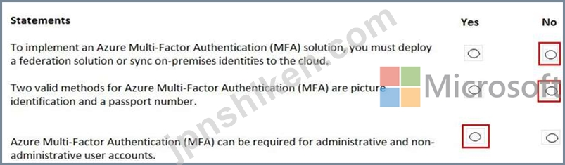 次の各ステートメントについて、ステートメントがtrueの場合は、[はい]を選択します。それ以外の場合は、[いいえ]を選択します。