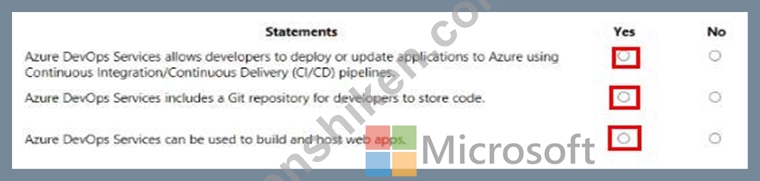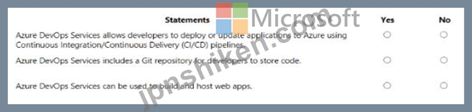 次の各ステートメントについて、ステートメントがtrueの場合は[はい]を選択し、そうでない場合は[いいえ]を選択します。