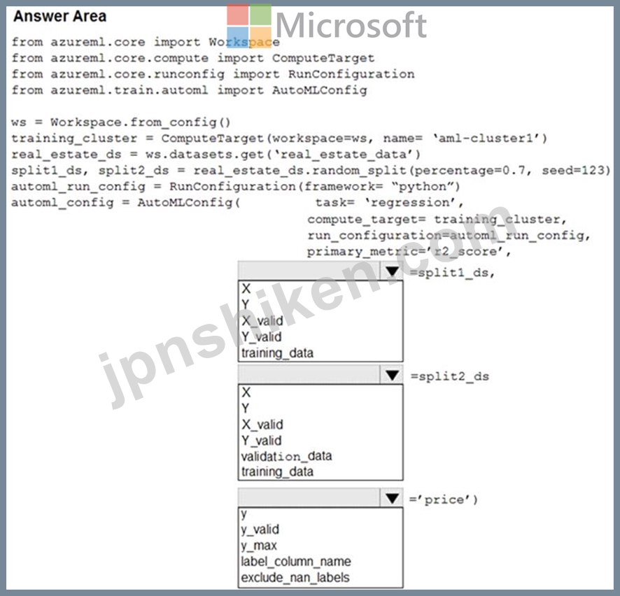 質問69 Azure Machine Learningワークスペースには、real_estate_dataと...