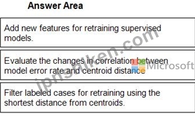 1 - Add new features for retraining supervised models. 2 - Evaluate the changes in correlation between model error rate and centroid distance 3 - Filter labeled cases for retraining using the shortest distance from centroids. Reference: https://en.wikipedia.org/wiki/Nearest_centroid_classifier https://docs.microsoft.com/en-us/azure/machine-learning/studio-module-reference/sweep-clustering