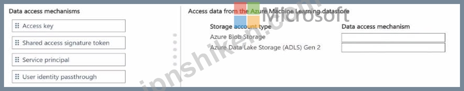 * 資格情報なしのデータストアではない Azure Data Lake Storage (ADLS) Gen 2 Azure Machine Learning データストア内のデータにアクセスするための認証メカニズムを定義する必要があります。