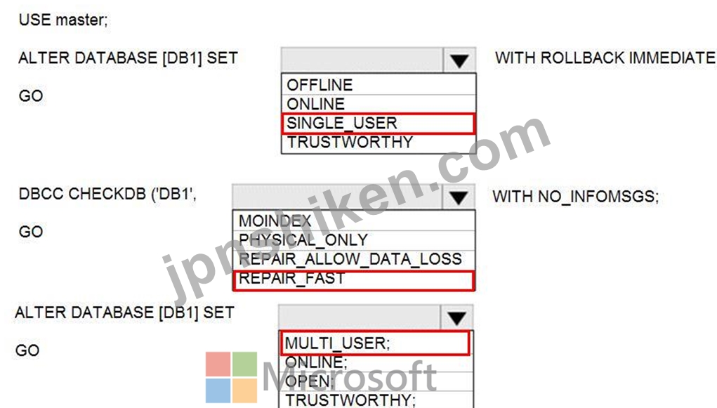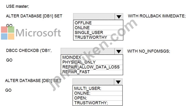 質問55 DB1という名前のデータベースを含むAzure仮想マシン上にSQLServe...