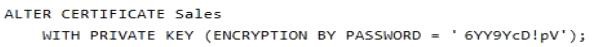 Salesという名前のプライベート証明書を含むDB1という名前のAzureSQLデータベースがあります。Salesの秘密鍵はパスワードで暗号化されています。秘密鍵のパスワードを変更する必要があります。どのTransact-SQLステートメントを実行する必要がありますか?