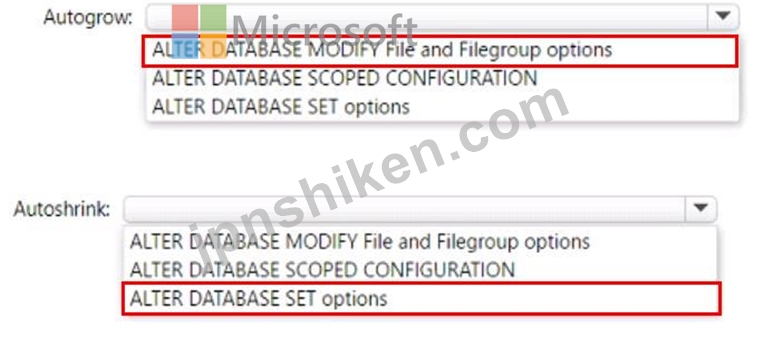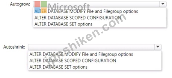 DB1 の autogrow および autoshrink 設定を構成する必要があります。