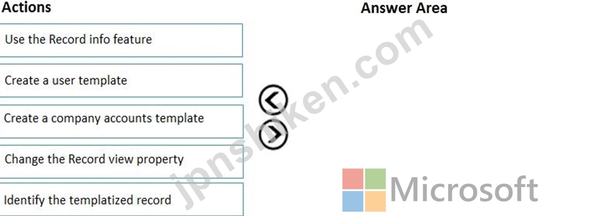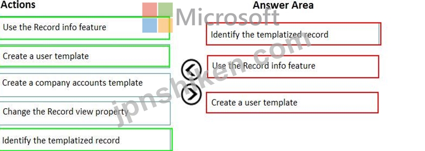 レコードテンプレートを作成するには、次の3つのアクションを順番に実行する必要がありますか?回答するには、適切なアクションをアクションのリストから回答エリアに移動し、正しい順序に並べます。