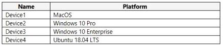 次の表に示すデバイスを含むMicrosoft365E5テナントがあります。
