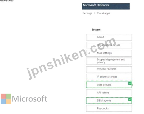 どの 2 つの設定を構成する必要がありますか? 回答するには、回答領域で適切な設定を選択します。
