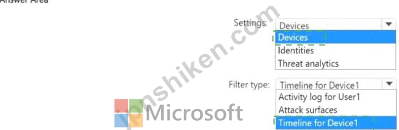 Microsoft Defender ポータルでは、どのような設定を構成し、どのような種類のフィルターを作成する必要がありますか? 回答するには、回答領域で適切なオプションを選択してください。