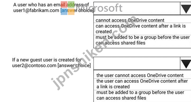 質問31 fabrikam.comのデフォルトドメイン名を使用するMicrosoft 365サ...