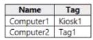 カスタム ネットワーク インジケーターがオンになっている Microsoft Defender for Endpoint 展開があります。Microsoft Defender for Endpoint は、次の表に示すように、Windows 10 を実行する 2 台のコンピューターを保護します。