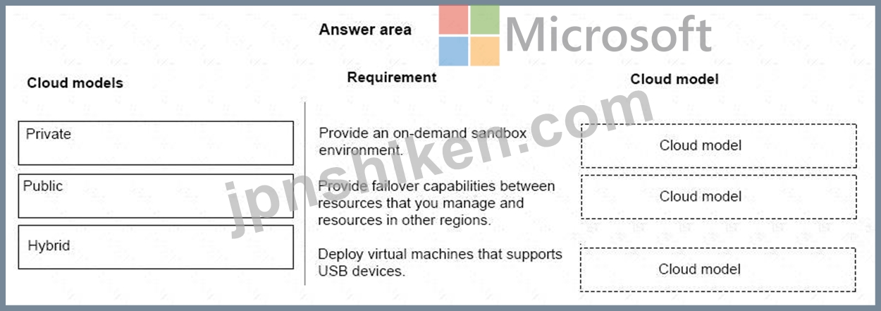 どのクラウドモデルを使用する必要がありますか?回答するには、適切なクラウドモデルを正しい要件にドラッグします。各クラウドモデルは、1回以上使用することも、まったく使用しないこともできます。コンテンツを表示するには、ペイン間で分割バーをドラッグするか、スクロールする必要がある場合があります。