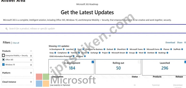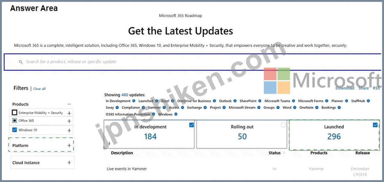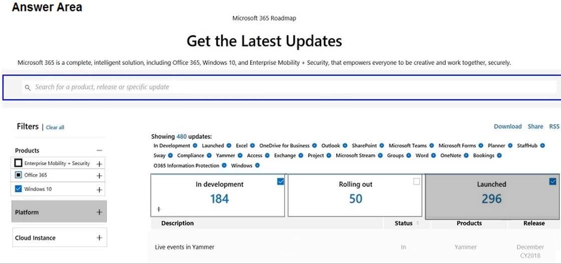 Microsoft 365ロードマップページで選択する必要がある2つのオプションはどれですか?回答するには、回答エリアで適切なオプションを選択します。