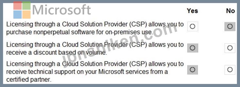 以下の各ステートメントについて、ステートメントが真である場合は「はい」を選択します。それ以外の場合は、「いいえ」を選択します。