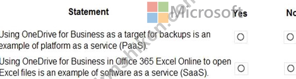 以下の各ステートメントについて、ステートメントが真である場合は「はい」を選択します。それ以外の場合は、「いいえ」を選択します。