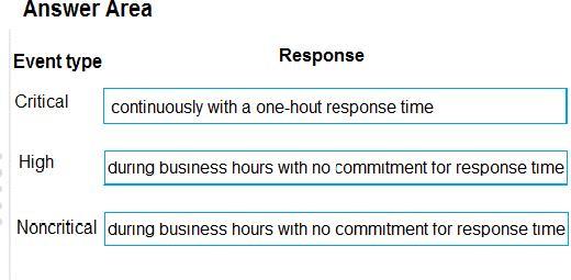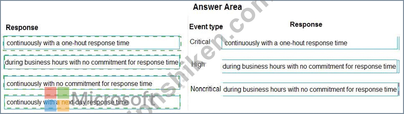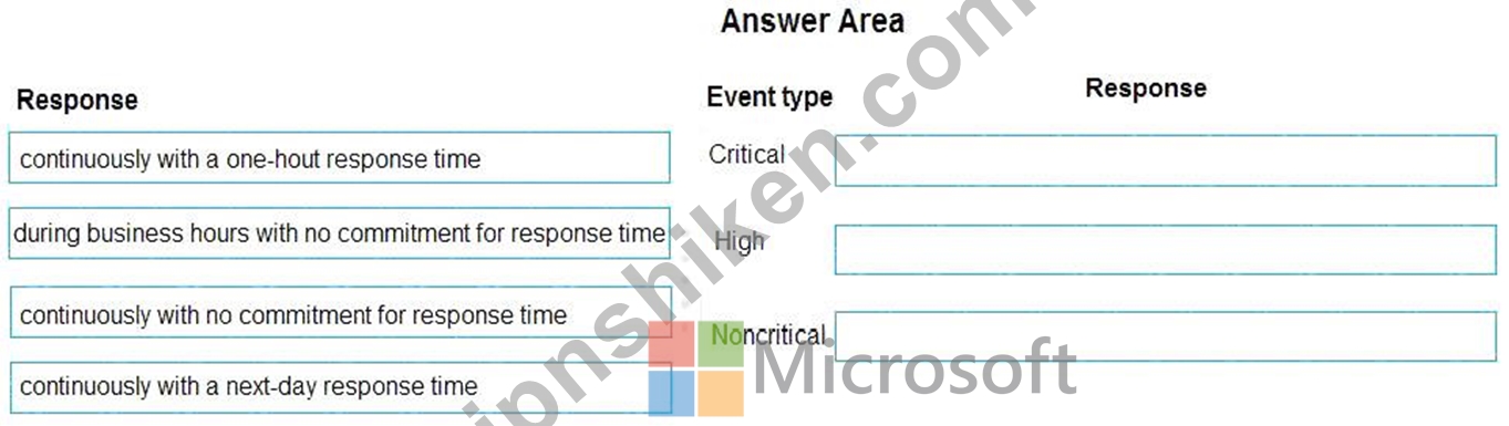イベントタイプごとにどのような応答を期待できますか?回答するには、適切な応答を正しいイベントタイプにドラッグします。各応答は、1回、複数回、またはまったく使用されない場合があります。コンテンツを表示するには、ペイン間で分割バーをドラッグするか、スクロールする必要がある場合があります。
