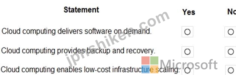以下の各ステートメントについて、ステートメントが真である場合は「はい」を選択します。それ以外の場合は、「いいえ」を選択します。