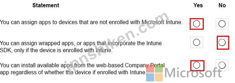 質問56 組織は、Microsoft Intuneの展開を計画しています。 以下の各ス...