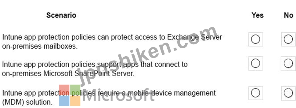 質問56 組織は、Microsoft Intuneの展開を計画しています。 以下の各ス...