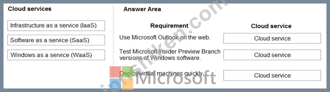 どのクラウドサービスを使用する必要がありますか?答えるには、適切なクラウドサービスを正しい要件にドラッグします。各クラウドサービスは、1回使用することも、複数回使用することも、まったく使用しないこともできます。コンテンツを表示するには、分割バーをペイン間でドラッグするか、スクロールする必要がある場合があります。