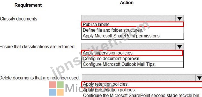 質問43 あなたは会社のMicrosoft 365管理者です。 会社の文書が機密とし...