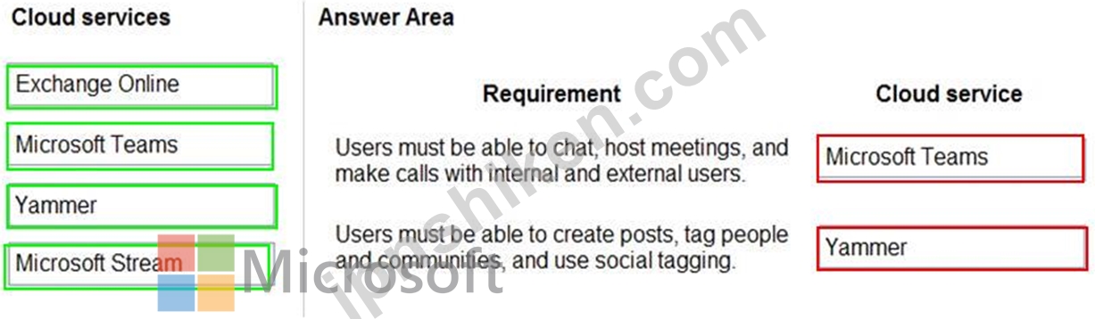 要件ごとにどのクラウドサービスを選択する必要がありますか?答えるには、適切なクラウドサービスを正しい要件にドラッグします。各クラウドサービスは、1回使用することも、複数回使用することも、まったく使用しないこともできます。コンテンツを表示するには、分割バーをペイン間でドラッグするか、スクロールする必要がある場合があります。